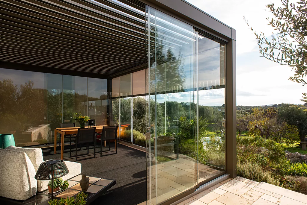 ترکیب جامبالکنی شیشهای و سقف متحرک پارچهای: تجربهای چهار فصل